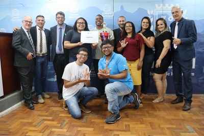 Neste 26 de setembro, Dia Nacional do Surdo, a Câmara de Cachoeiro recebeu representantes da Assurci - Associação dos Surdos de Cachoeiro de Itapemirim. A entidade veio apresentar o troféu da 6ª Copa Capixaba de Futsal de Surdos e recebeu Homenagem Especial proposta pelo vereador Sandro Irmão (PSD).